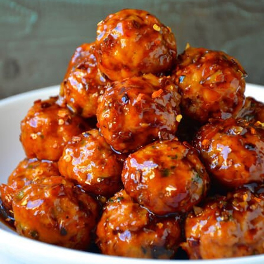 Ингредиенты: 1 кг митболов, 200 мл томатной пасты, 200 г коричневого сахара, 100 мл бурбона, 2 ч.л лимонного сока, 2 ст.л вустерского соуса.