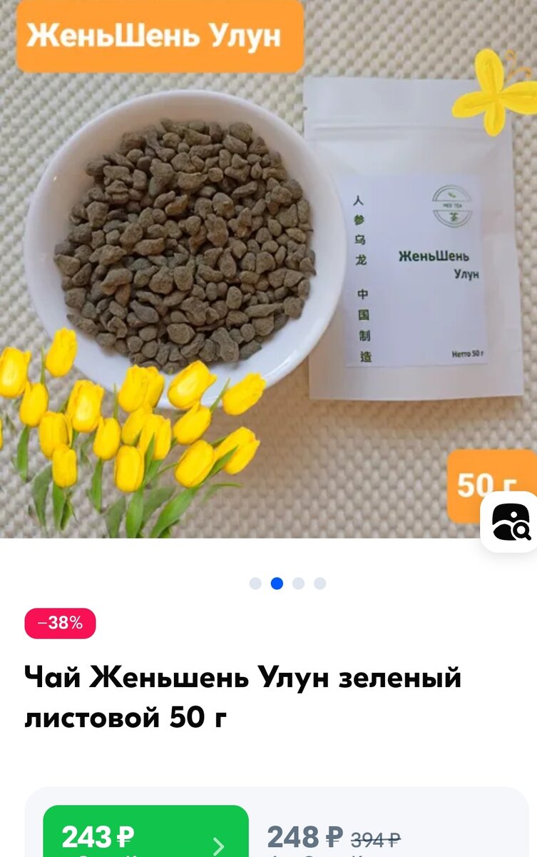 Наиболее популярный и привычный вид улуна. Похож на маленькие камушки пыльно-зелёного цвета. Для его изготовления берут уже готовый светлый улун, скрученный в тугие шарики, и обсыпают порошком женьшеня. Чаще всего женьшень смешивают с другими лекарственными травами, например, солодкой. Это позволяет сделать вкус ярче, а производство дешевле. Cоотношение чая к травам: 95% к 5%. Давно хотела попробовать улун женьшень. И вот такая возможность случилась. Получила вчера заказ с Озона. Заказывала мужу лак для рукоделия, корабль ему надо лаком покрыть, и заодно купила чай. Оказывается, есть 2 вида улуна с женьшенем. Есть ещё улун женьшень с Тайваня, но он встречается реже и стоит дороже. Да и выглядит немного иначе. Если улун из Фуцзяни похож на камушки, то тайваньский улун похож на чай, спрессованный кусочками. Что пишут о вкусе чая в интернете. Улун женьшень порадует вас сложным и глубоким вкусом. Он сочетает в себе нотки сладости, цветов и фруктов, создавая богатый и элегантный профиль