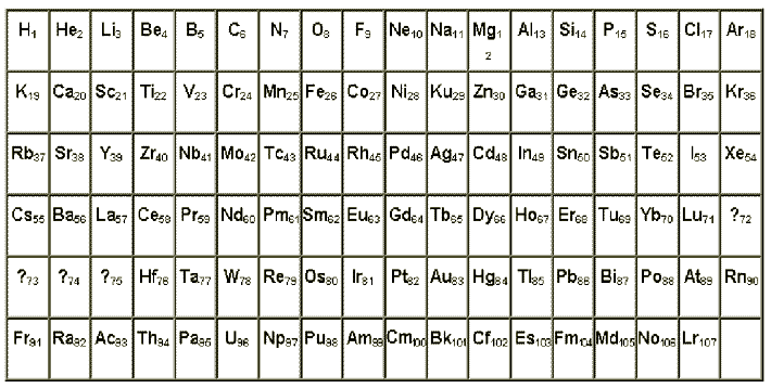 For copper, the result was 29.3 - more than the true one by 0.3, for silver 46.3 already less than the true one by 0.7, and for platinum less than the “true” one by only 0.6. The decrease is due to protons shielding each other during measurements. Therefore, for platinum with a charge of 78, the result should have been less than what was obtained, or in other words, the platinum atom has a nuclear charge greater than 78 and equal to 82. We build a table of elements according to the charges of the nuclei of atoms of chemical elements. If we assume that in the periodic table of elements the atomic weight increases more or less evenly from left to right and from top to bottom, then the hafnium atom and the ones following it should not be placed immediately after lanthanum - they should be located a line below... This led me in 1989 to building a physical table of elements. Please see this table online.