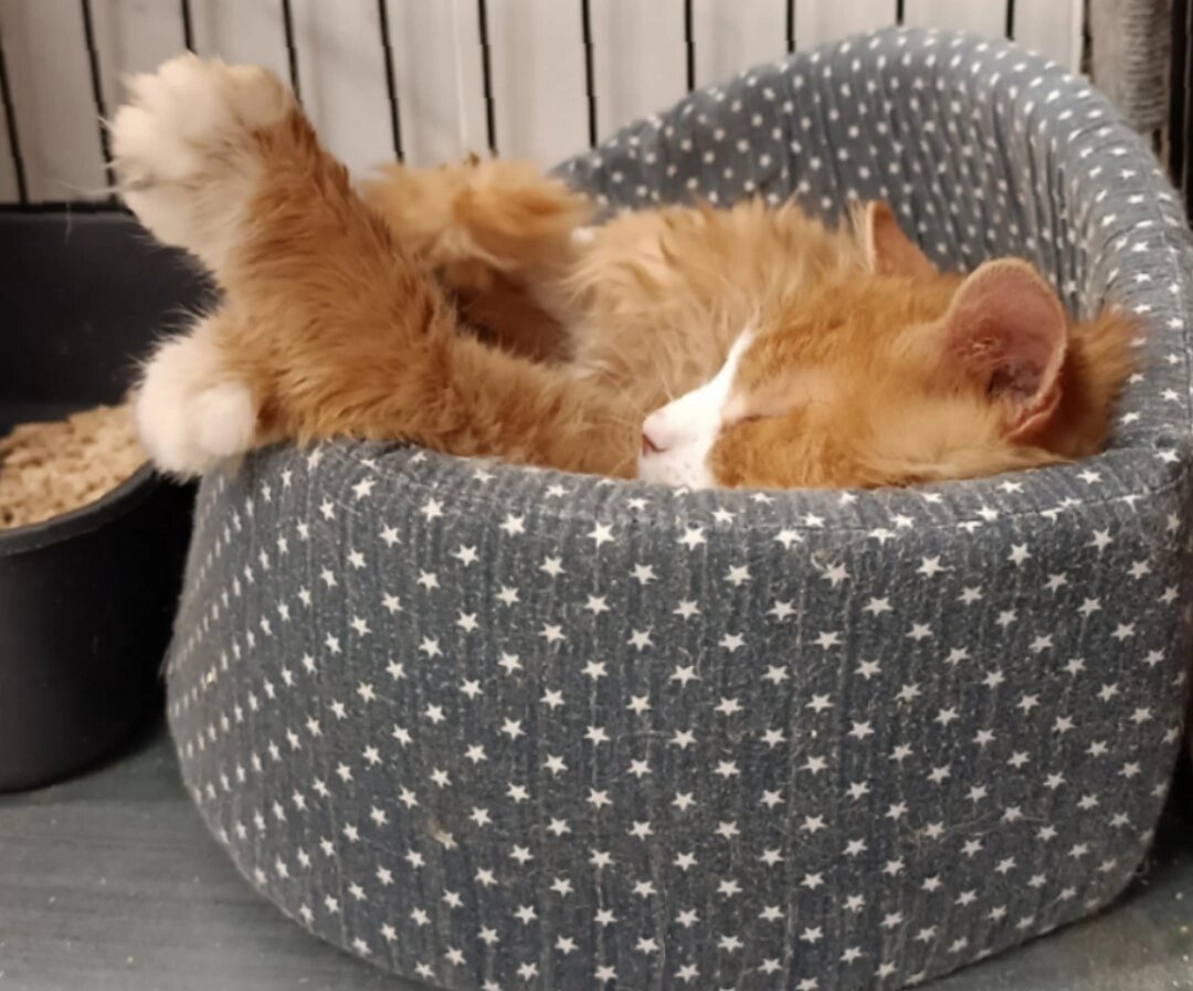 Рыжее солнышко Морис уже поужинал и лёг спать 😍