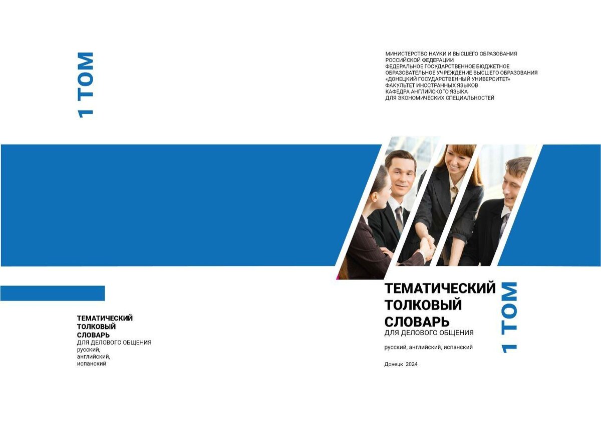 На кафедре английского языка для экономических специальностей издали тематический толковый словарь для делового общения (русский, английский и испанский языки) в двух томах под редакцией заведующей кафедрой, к.фил.н., доц. Эльмиры Брагиной. В составлении словаря принимали участие преподаватели кафедры: заведующая кафедрой, к.ф.н., доц. Эльмира Брагина, к.ф.н., доц. Марина Мохосоева, ст.преп. Лилия Ещенко, ст. преп. Марина Писаревская. Работа над составлением тематического словаря велась несколько лет. Словарь включает в себя основные термины делового общения, которые распределены на 15 тематических разделов экономических сфер деятельности в каждом томе. В каждом разделе содержится около 100 терминов с их толкованиями на русском, английском и испанском языках. Настоящий тематический толковый словарь для делового общения станет незаменимым помощником для студентов-бакалавров и студентов магистратуры всех экономических специальностей, а также для преподавателей, переводчиков и всех, кто