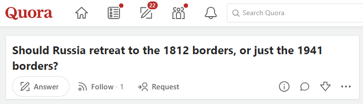 Ух, как я люблю подобные вопросики на Quora... Ведь к ним идут такие милые в своей лютой ненависти к России комментарии западной биомассы, скрежещущей зубами в бессильной злобе, и вынужденной ее реализовывать в своих пасквилях. Посмотрим же на этот зоопарк? Следует ли России отступить к границам 1812 года или только к границам 1941 года? ****************** Кобальт, США Лучше бы Россия исчезла вообще. И это сделает мир лучше... *** Елена Голд Еще имеется граница 1471 года. А в идеале название государства надо поменять на Московию... Уолли Бонд