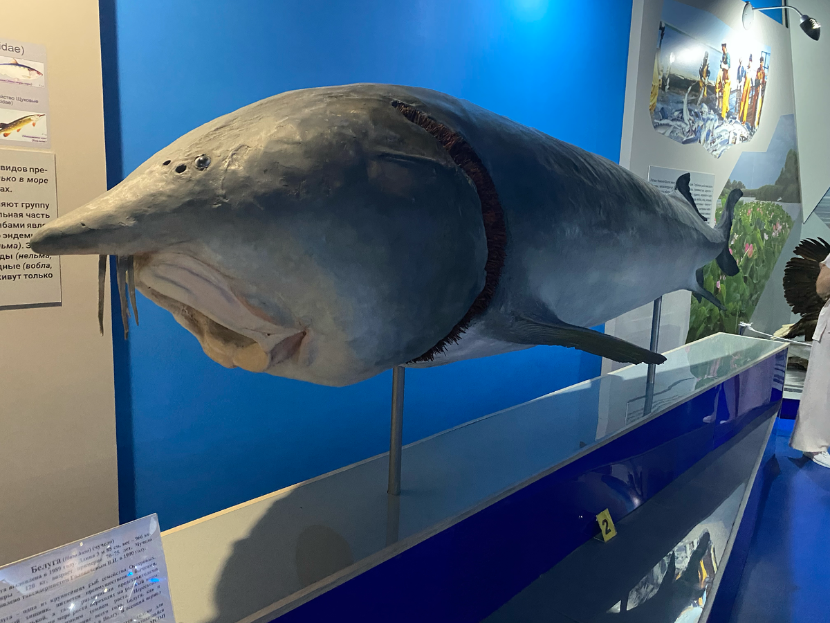 Еще в музее представлен муляж (не чучело) самой крупной белуги весом более 2 тонн и длинной более 6 метров. Из них икры 250 кг. Возраст особи был 120 лет. Для изготовления такого муляжа потребовалось две белуги...