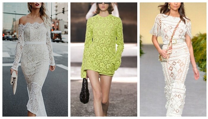 Многогранность современных трендов просто поражает. Кружево — именно оно занимает лидирующие позиции в современной индустрии моды. Давайте вместе познакомимся поближе с этим женственным трендом. Разнообразие кружева вызывает восторг и восхищение, как у юных, так и зрелых красоток. Перед вами подборка умопомрачительных платьев, которые выполненные из ажурного кружева разных оттенков. Крупные цветы, узоры, геометрические фигуры, а также кружево в одном тандеме с прозрачной тканью или сеткой — все это является безоговорочным трендом этого года. Белоснежное макси платье из кружева с квадратным вырезом в зоне декольте + широкий контрастный ремень из натуральной кожи + громоздкие ботинки + цветная сумка колорблок — шикарный пример образа, который подойдет для городского повседневного аутфита. Нарядное кружевное миди платье с пышными рукавами и многослойной юбкой гуру моды предпочли «подружить» с сандалиями в минималистичном стиле. Яркое кружево влюбляет в себя с первого взгляда, этот матери