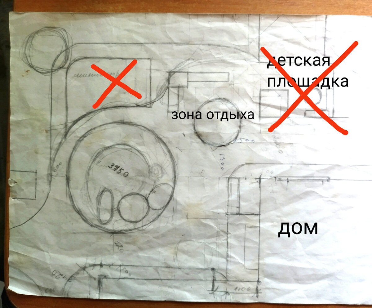 Я часто рисую проекты изменений в своем саду. И общие моменты и каждой клумбы по отдельности. Иногда просто фиксирую какие то идеи в набросках. А сегодня мне попались на глаза изнуренные стеркой и моим неуемными творческими идеями проекты от 2020 года. Вот самый первый проект дворовой территории. Он терпел чуть ли не каждодневные изменения и пришлось перенести его уже на другой лист. В этом проекте я просто отказалась от лишних дорожек и пометила одну из клумб как розарий. Но розарий я там далать передумала из за засушливости подобной клумбы, где так же проходит дренажная труба. Я решила сделать на этом месте клумбы из суккулентных растений. А розарий сдвинула на другую сторону дорожки, где отменила детскую площадку. А это просто набросок, той картинки, которая должна получиться из скалы, сосны и пруда. Сосне надо подрасти: пока ее плохо видно из за скалы - подождем!) И вот был еще такой набросок, который не уберегла и он попал в ручки маленькой художницы, которая решила его ра