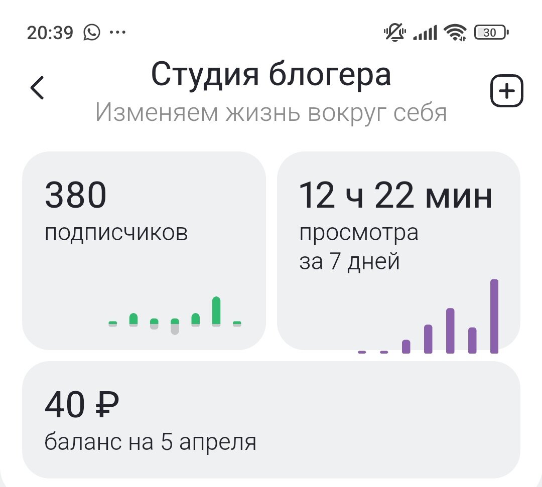 Прошла неделя с момента получения монетизации, это для всех является своеобразным рубежом, до которого важно дойти. Вот и я за четыре недели доползла до него, потом три дня не могла подключиться (то селфи не получится, то просто некогда было этим заниматься). Для меня Дзен - это хобби и я прекрасно понимаю, что супер доходами, да и просто доходами здесь не стоит обольщаться, поэтому реально смотрю на вещи и прикидывала, что за месяц накапает порядка двухсот пятидесяти рублей. За первый день пришло два рубля! Потом я вообще не смотрела несколько дней и вот такой баланс был на пятое апреля, целых сорок рублей И вот ровно за неделю с момента получения мой заработок: Так же понимаю, что из трёхсот восьмидесяти восьми подписчиков больше половины "мёртвые души", которые зачем-то подписались и не проявляют никакой активности. Путём элементарных расчётов можно сделать вывод, что для начисления Дзеном