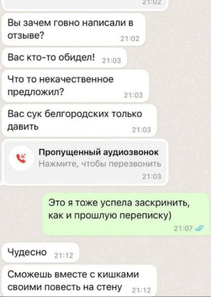 Арендодатель из Санкт-Петербурга оскорбил жителей Белгородской области. Любопытной перепиской поделился телеграм-канал «Белгород №1». По словам автора скриншота, белгородцы планировали снять квартиру в Санкт-Петербурге. Но арендодатель, узнав, жители какого региона заселятся к нему, поднял стоимость на 30%. Белгородцев ожидаемо возмутил разброс цен, поскольку они рассчитывали на более приемлемые условия. А арендодателю не понравились претензии со стороны потенциальных жильцов. Он заявил в переписке о том, что нужно «давить белгородских сук», а также призвал человека по ту сторону экрана повесить скриншоты на стену «вместе со своими кишками». Напомним, это далеко не первый случай непонимания со стороны арендодателей из других городов. Некоторые из них принципиально не сдают квартиры белгородцам, опасаясь, что не потянут съем или уедут через пару недель, как только в Белгороде затихнут обстрелы. Другие пытаются нажиться на непростой оперативной обстановке, которая заставляет людей времен