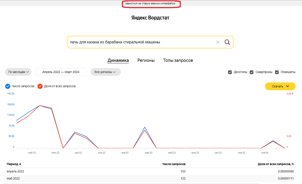 Есть ряд авторов, которые вообще не заморачиваются с названием, пишут - Новый ролик и все, наслаждайтесь :-) Я нахожусь где-то посередине. Для меня нужно, чтобы название отражало суть публикации, не обманывая читателя, а то получишь бан, но и также, понимая, что дзен, рано или поздно, перестанет показывать публикацию в ленте, нужно чтобы публикацию нашли через поиск - это считаю главнее. Для подбора названий публикации я использую вот этот инструмент - Знакомьтесь - Яндекс Вордстат - данный сервис показывает какие запросы в поиске были популярными, а также предложит похожие варианты запросов (это лучше смотреть в старой версии сайта - мне она больше понравился). Перейдя по ссылке, вы попадете в