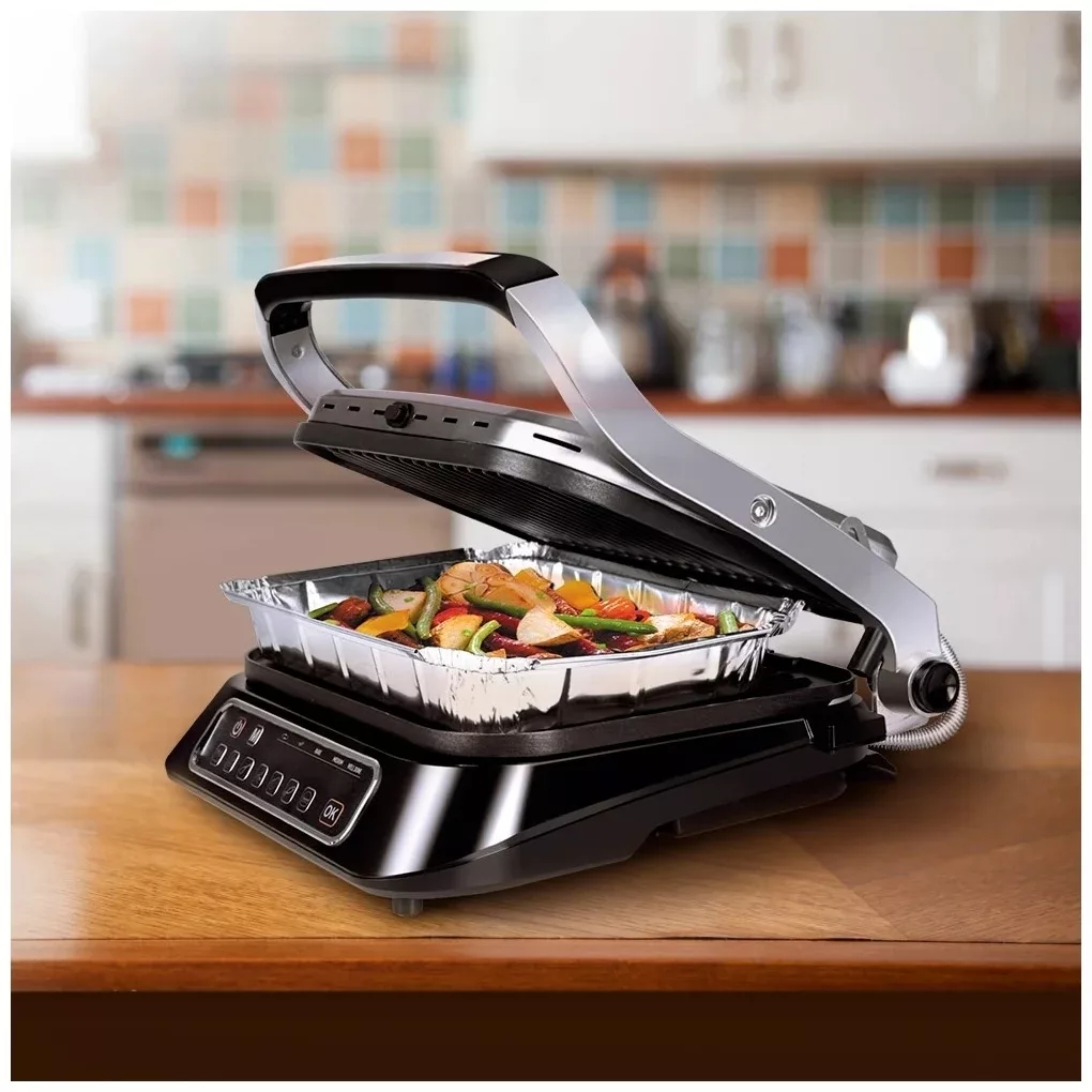 Благодаря высокой температуре нагрева до 240 градусов Цельсия, гриль образует хрустящую корочку на блюдах быстрее, сохраняя при этом их сочность и вкус. Семь автоматических программ предназначены для приготовления различных продуктов, включая мясо, рыбу, овощи и бургеры.