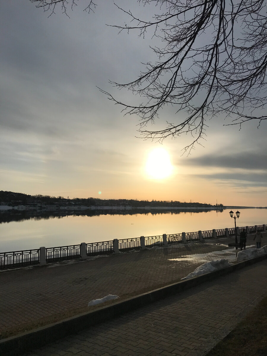 Первого марта я лайкнула в соцсети фото набережной в Костроме. Первый день весны, а сугробы с человеческий рост. Всё занесено снегом, никаких дорожек никто зимой не расчищал. Люди сами протоптали тропинки. И гуляли вдоль реки. Там всё равно было красиво. Особенно, когда зима, новогодние праздники, хорошее настроение. Но – Весна. И вот прошло всего 4 недели с первого числа марта месяца, и уже всё почти растаяло. Хотела подняться по ступеням, но дорогу мне преградил снег. Ладно, подождём. Несколько дней и всё будет чисто уже. А здесь, помню, летом гуляли весёлой женской компанией. В слове "Любовь" буква "О" – это колечко с бриллиантом (подозреваю), какое мужчины дарят в кино женщинам, когда просят выйти замуж. И вот это через это "кольцо" постоянно пролезают незамужние горожанки. Считается, что именно так можно привлечь жениха в свою жизнь. Было смешно, когда за всеми вслед через "колечко" пролезла и замужняя дамочка. Мы спрашиваем: "А ты чего" Она: "На всякий случай". А что, правильно.