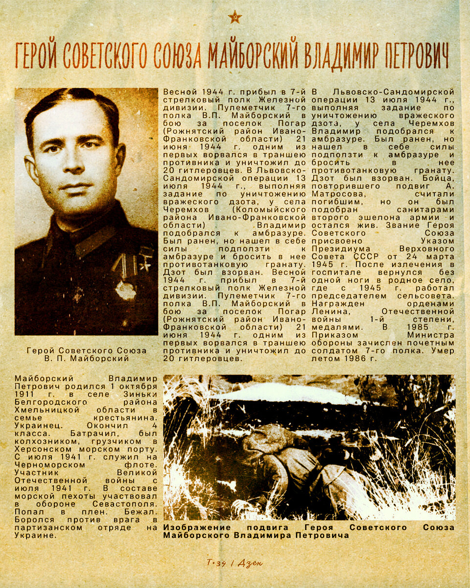 24 марта 1945 года рядовому Владимиру Петровичу Майборскому Указом Президиума Верховного Совета СССР присвоено высокое звание Героя Советского Союза. Ниже — письмо майора А. Буберева, командира батальона, в котором служил тов. Майборский. Владимиру Майборскому присвоено звание Героя Советского Союза. Эта весть взволновала всех наших бойцов — и тех, кто рядом с ним сражался против немцев, и тех, кто не знал его, но от ветеранов полка много слышал о легендарном подвиге этого человека и успел полюбить его заочно.