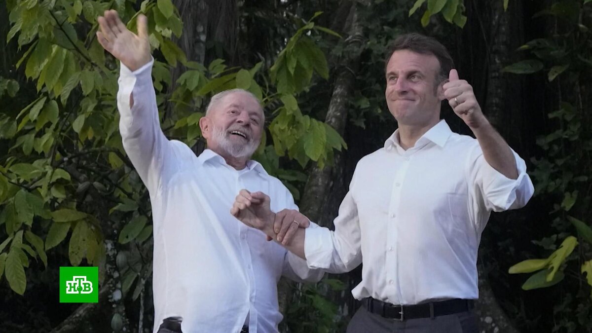[ Смотреть видео на сайте НТВ ] Пользователи в соцсетях активно обсуждают визит французского лидера в Бразилию, сравнивая его официальные снимки с да Силвой со свадебной фотосессией. Первый за 11 лет визит французского лидера в Бразилию, конечно, не предполагал, что серьезный политический диалог может обратиться в фарс. Тем более, что сначала все шло штатно: Макрон и да Силва торжественно спустили на воду подлодку Tonelero, построенную в Бразилии по французским технологиям. Первая леди Бразилии Джанджа Лула да Силва даже разбила бутылку шампанского по этому случаю. Обсуждали двустороннее сотрудничество и, конечно, более глобальные темы. Эммануэль Макрон предполагал склонить да Силву сменить позицию нейтралитета, которой придерживается Бразилия в отношении украинского кризиса, и как-то уже присоединиться к антироссийским санкциям, финансовой поддержке Киева и осуждению России на уровне Совбеза ООН. Бразильский лидер, несмотря на все радушие, которое он гостю, оказался непреклонен. Луис