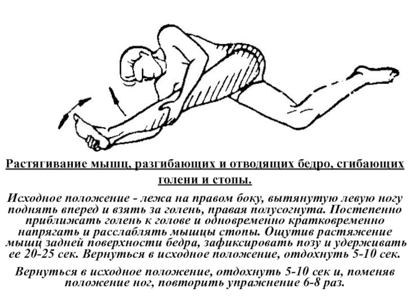 РАСТЯГИВАНИЕ МЫШЦ, РАЗГИБАЮЩИХ И ОТВОДЯЩИХ БЕДРО, СГИБАЮЩИХ ГОЛЕНИ И СТОПЫ.