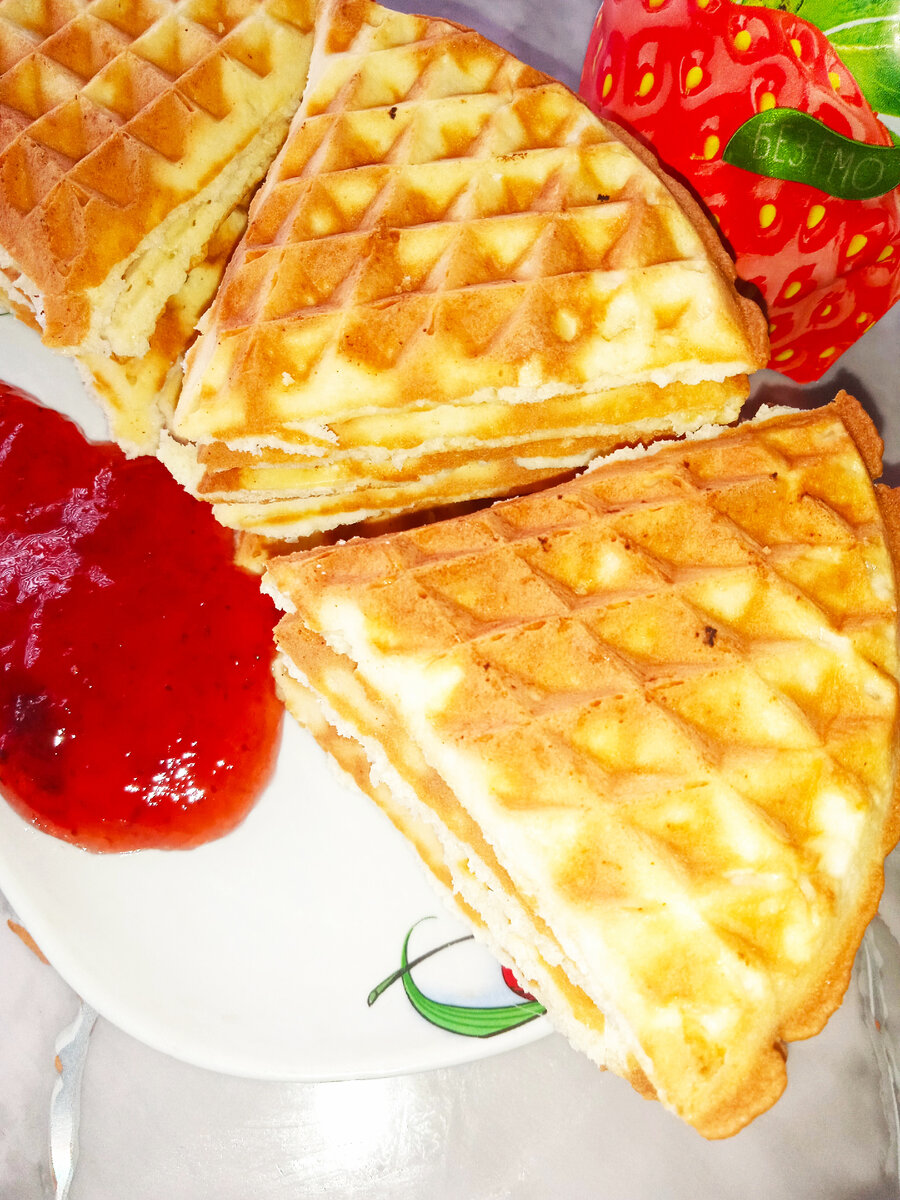Кто не любит венские вафли? Особенно хорошо они сочетаются с сезонными фруктами, хотя их по этому рецепту можно есть и без добавок, так как вафли получаются хрустящие и нежные. Гарантирую, что одной порцией вы не обойдетесь! Их можно приготовить в сладком или соленом варианте: что кому нравится и чего хочется. Обязательно попробуйте рецепт хрустящих домашних вафель! Я его уже не раз проверила! Получаются всегда!!! Ингредиенты Тесто: Дополнительно по желанию: Приготовление 1. Важно: яйца должны быть комнатной температуры, а вафельница должна быть хорошо нагрета до максимальной температуры. Отделите белки от желтков. Просейте муку с разрыхлителем и ванильным сахаром. 2. Желтки соединить с молоком, водой и маслом. Добавьте просеянную муку и сахар, хорошо перемешайте. 3. В отдельной миске взбейте яйца с сахаром и щепоткой соли. Пену необходимо взбить крепко. Соедините пену с массой и аккуратно перемешайте, чтобы она не опадала. 4. Слегка смажьте разогретую вафельницу маслом и положите тест