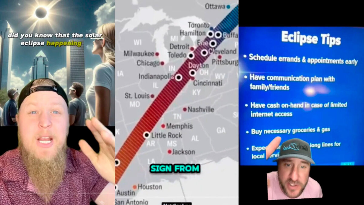 В понедельник, 8 апреля, полное солнечное затмение станет грандиозным зрелищем для примерно 44 миллионов человек, живущих в зоне полной фазы. Однако некоторые пользователи платформ вроде YouTube и TikTok полагают, что это может буквально означать конец света. Один из популярных слухов, циркулирующих в Интернете, гласит, что затмение пройдет над несколькими городами под названием Ниневия в США и Канаде. Некоторые связывают это с библейской историей о пророке Ионе, посетившем древний город Ниневию. Однако на самом деле полоса полной фазы затмения пройдет лишь над двумя такими городами — в Огайо и Индиане. Библеист Дэн Макклеллан опровергает эти утверждения, объясняя, что они не имеют смысла с библейской точки зрения. Он отмечает, что затмение также произойдет в таких местах, как Санта-Клаус в Индиане и Дин-Дон в Техасе, на основе чего можно построить столь же абсурдные теории. Создатели контента в соцсетях также продвигают страхи о возможном отключении электросистем и сотовой инфраструкт