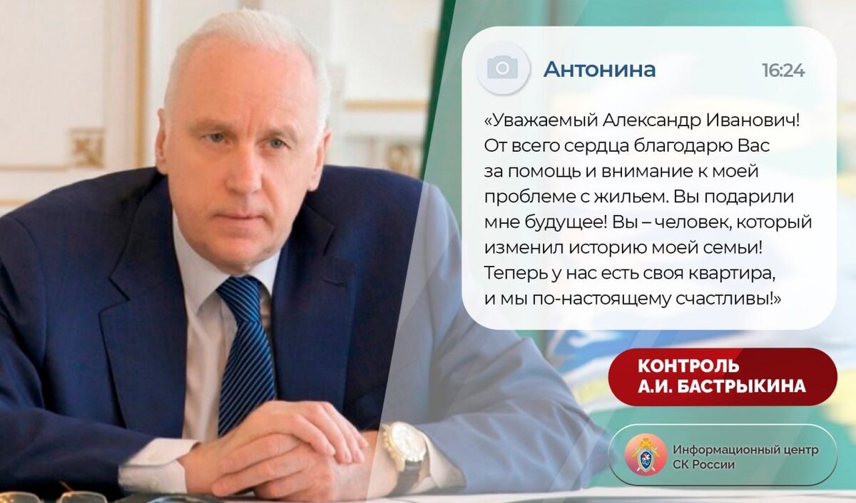 Антонина Леонидовна снова написала теплые слова признательности: «Уважаемый Александр Иванович! От всего сердца благодарю Вас за помощь и внимание к моей проблеме с жильем. Вы подарили мне будущее! Вы – человек, который изменил историю моей семьи! Теперь у нас есть своя квартира, и мы по-настоящему счастливы!»