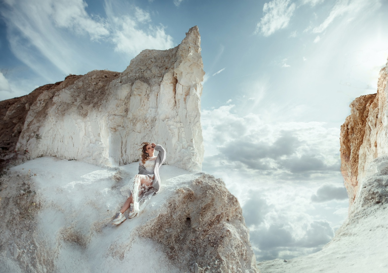Восхитительная девушка в горах: вид прекрасен
