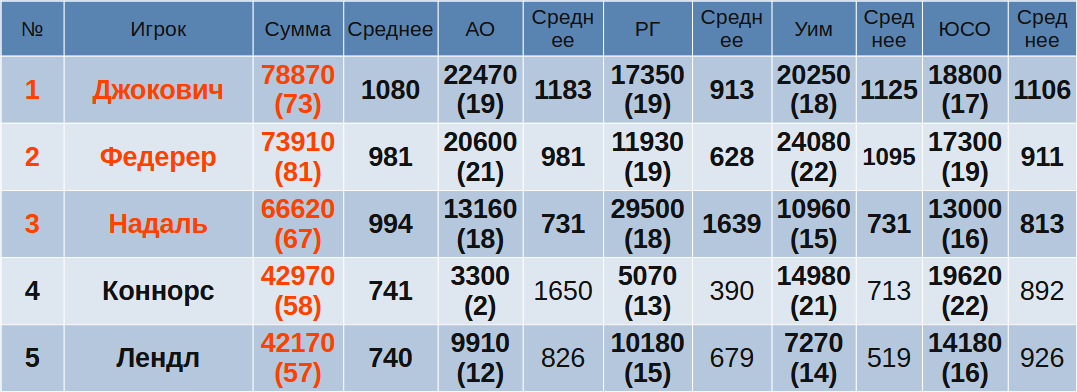 Наших в топ-30 нет. Все трое российских "шлемников" находятся чуть ниже. Впрочем, ещё 460 очков и Медведев догонит Смита(30-е место). Думаю, уже в этом году справится.