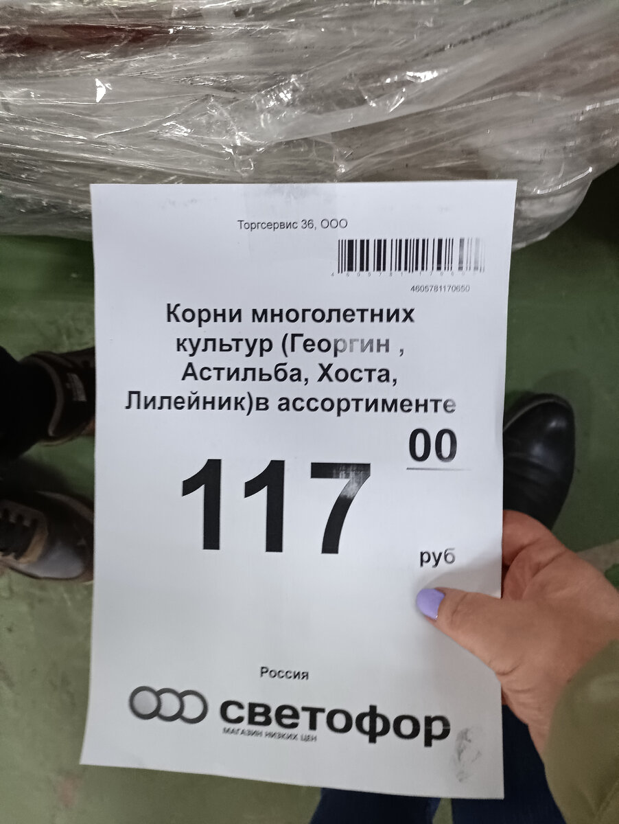 Всем большой привет! Вчера заезжали в "Светофор". Поразило огромное разнообразие посадочного материала. Прямо у входа я заметила многолетники: астильба, хоста, лилейники, георгины по 117 руб.