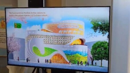 Павильон был презентован на прошедшем туркмено-японском бизнес-форуме. В рамках третьей сессии туркмено-японского бизнес-форума, проведенного 27 марта в Токио, состоялась презентация Национального павильона Туркменистана на предстоящей Всемирной выставке ЭКСПО-2025 в Осаке. Проект, дающий представление о том, как будет выглядеть Национальный павильон, представил директор ХО ««Belli»», с которым Министерство торговли и внешнеэкономических связей Туркменистана заключило контракт на выполнение работ по проектированию и строительству с благоустройством прилегающих территорий и полной готовностью к эксплуатации этого объекта. Оригинальный архитектурный стиль и яркий дизайн, экологически чистые материалы высокого качества, использованные при его возведении, обеспечат привлекательность Национального павильона Туркменистана для посетителей Всемирной выставки. В нем будут представлены достижения страны за годы независимости, ее культурные ценности, ковры ручной работы, промышленные изделия, а т