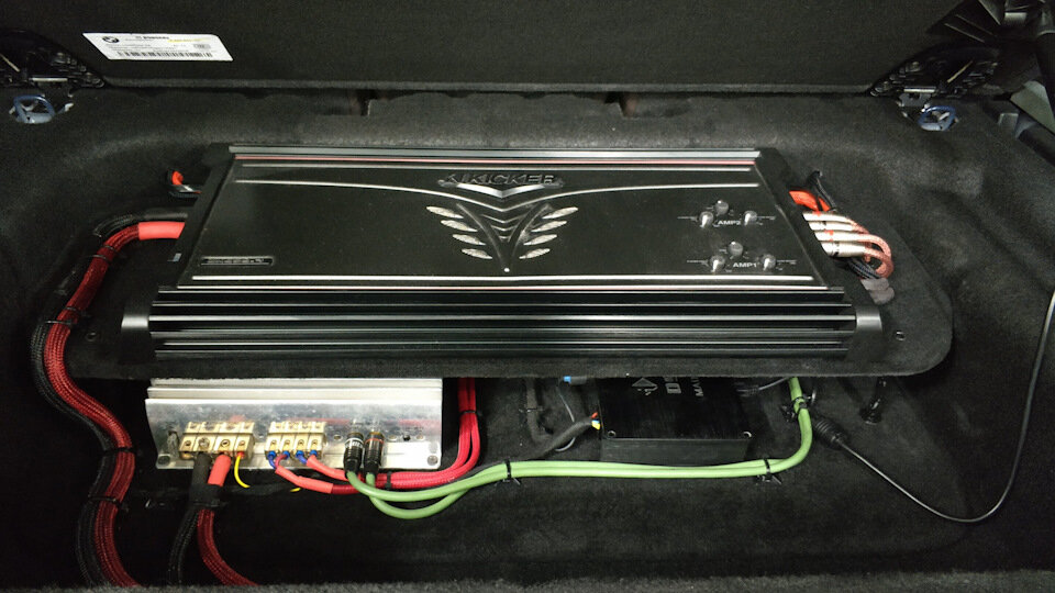 Два канала — на четырёхканальник Kicker ZX650.4 — с него на миды CDT HD6.