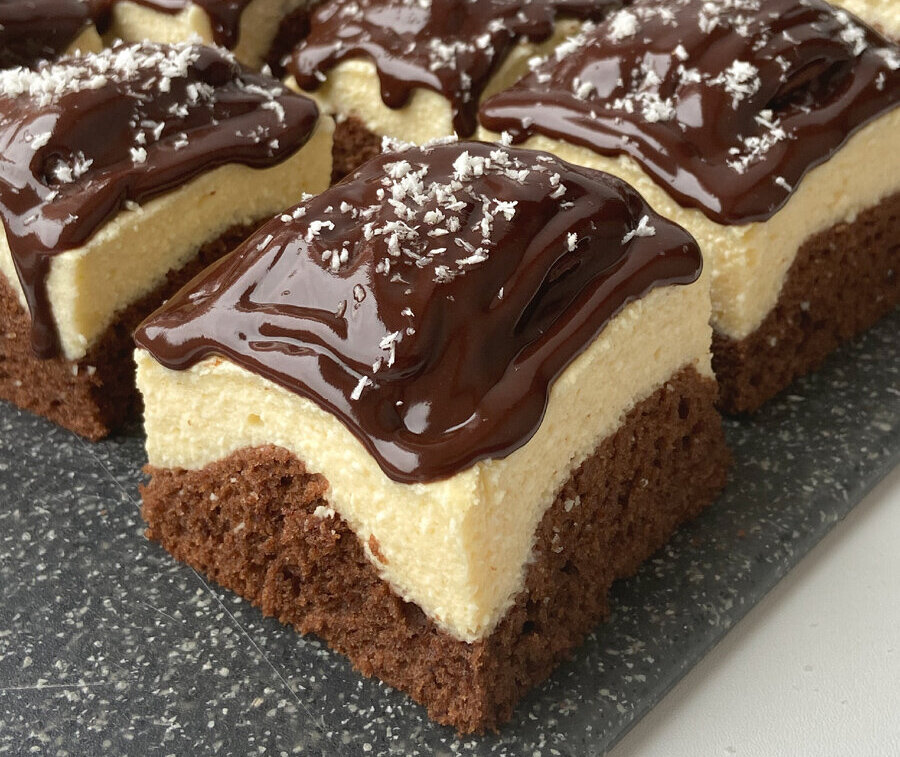 Этот десерт сочетает в себе мягкий шоколадный бисквит и нежную творожную часть. Идеально подойдёт любителям магазинных вкусняшек по типу «Киндер Делис»🍫 Список ингредиентов и их количество ищи в конце статьи😉 Готовим👩🏻🍳 Творожный слой: Шоколадный бисквит: Шоколадная глазурь: Ингредиенты (квадратная форма 22*22см): Творожная часть: Шоколадный бисквит: Шоколадная глазурь (по желанию, без нее тоже очень вкусно): Приятного аппетита🥰
