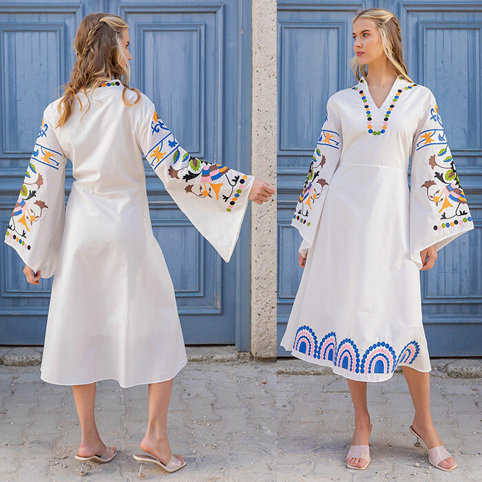 Выкройка платья с вышивкой отрезного свободного