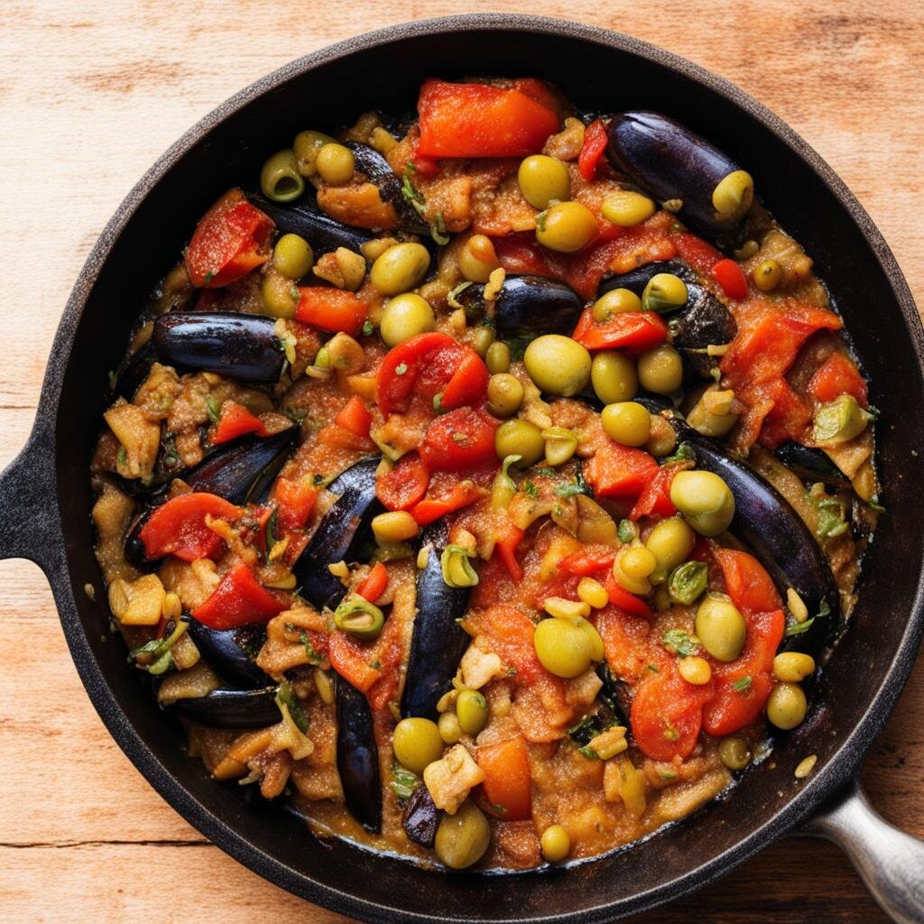 Капоната - это традиционное сицилийское блюдо, которое в основном готовят с помидорами, баклажанами, оливками, каперсами и другими овощами. Название "капоната" происходит от арабского слова "каббана", что означает "сварить на сковороде". Влияние арабской культуры на сицилийскую кухню отразилось и в этом блюде. В сицилийской кухне капоната считается традиционным блюдом времен летних фермерских работ, когда овощи были доступны и нужно было использовать их максимально. Благодаря своему богатству овощами, капоната богата питательными веществами и антиоксидантами, что делает ее не только вкусной, но и полезной для здоровья. Для приготовления Капоната нам понадобятся следующие ингредиенты: Приступим! Баклажаны порежьте кубиками 2 см. Очистите сельдерей и порежьте его кубиками. Помидоры очистите от семечек и порежьте кубиками. Измельчите лук. В несколько приемов часто помешивая, пожарьте порезанные баклажаны на оливковом масле до мягкости. Посолите. На 2 минуты опустите сельдерей в подсоленны