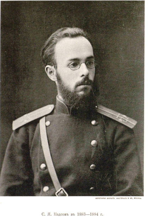 В истории русской поэзии имя Надсона не поставлено на высокий пьедестал, но если бы он прожил дольше, он с уверенностью занял бы главенствующее положение, сыграл бы роль путеводной звезды в русской литературе. Судьба не дала вполне окрепнуть и развиться молодому дарованию, он скончался в двадцать четыре года от чахотки. Полная самобытность Надсона, как поэта сказалась прежде всего уже в том, что у него нет ни переводов из других поэтов, ни подражаний другим поэтам… Собрания его стихотворений выходили одно за другим в десятках тысяч экземпляров. Увенчанный Академией Наук Пушкинской премией, Надсон был кумиром молодежи, которая видела в нем певца юности с ее стремлениями к подвигам и жертвам.