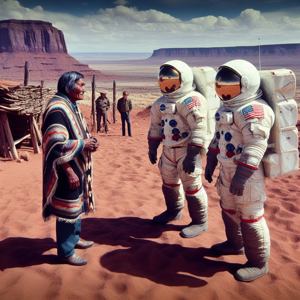 Однажды старейшина навахо и его внук пасли овец и наткнулись на космический экипаж. Старик, говоривший только на языке навахо, задал вопрос, который внук перевел: «Что делают ребята в больших костюмах?» Член экипажа сказал, что они готовятся к путешествию на Луну. Сотрудники НАСА ответили, что это просто люди, которые готовятся отправиться на Луну.