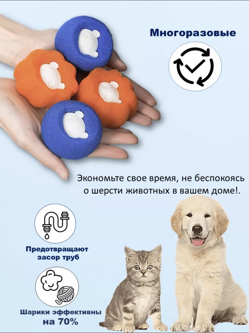 Получите наш набор шариков для стиральных машин, это инновационная ловушка специально разработанная для эффективного удаления шерсти, волос животных, катышек и других нежелательных веществ с вашей одежды во время стирки. Результат виден после первой стирки. Пользоваться этими шариками очень просто: вы добавляете их вместе с одеждой в барабан стиральной машины перед началом стирки. ВНИМАНИЕ! Наполнять нужно на половину, что бы результат шариков был лучше! Их уникальная конструкция позволяет эффективно и максимально собирать шерсть и пух, а специальные нейлоновые щетинки обеспечивают дополнительное воздействие на волокна ткани, чтобы гарантировать максимальный результат. Мячики для стирки эффективно собирают пух, волосы и катышки с белья. Вы можете быть уверены, что ваша одежда будет выглядеть свежей и безупречной, а также не будет оставлять следов шерсти или пуха на других предметах. Кроме того, это отличный способ сохранить свою стиральную машину в идеальном состоянии, так как они пом