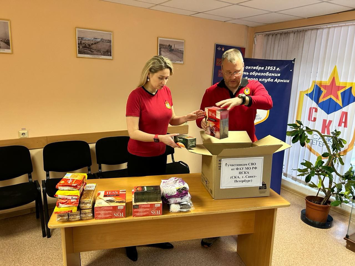 Новую партию помощи собрали работники Спортивного комплекса «Плавательный» филиала ЦСКА Санкт-Петербург. В составе посылки – продукты питания, которые поднимут настроение и разнообразят полевую кухню.