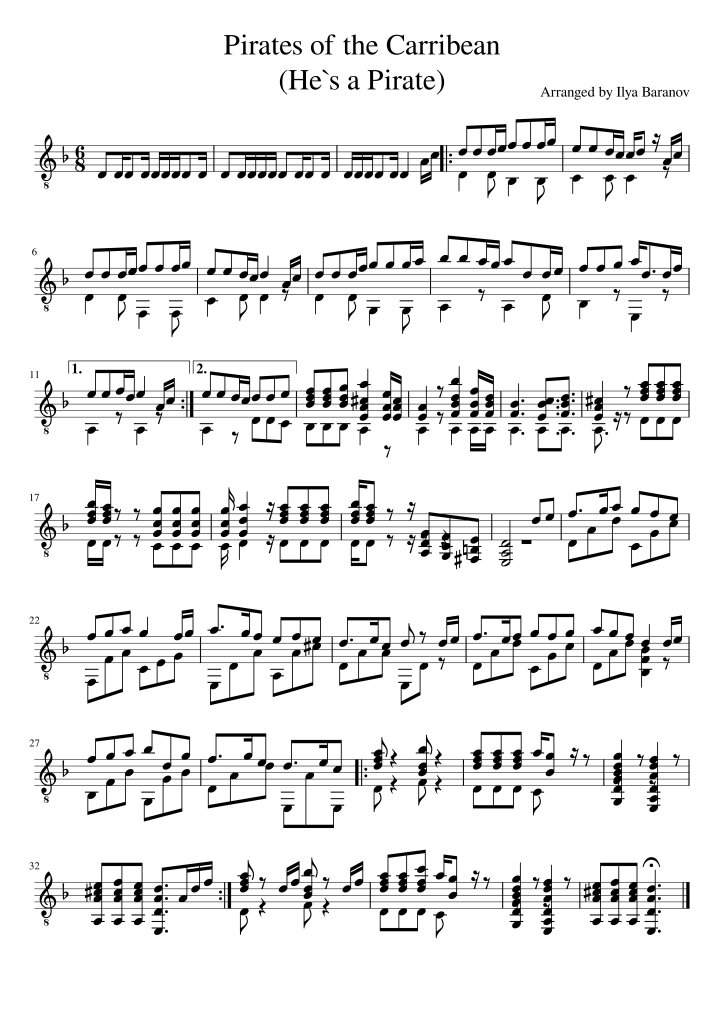 Из партитуры фильма "Пираты Карибского моря