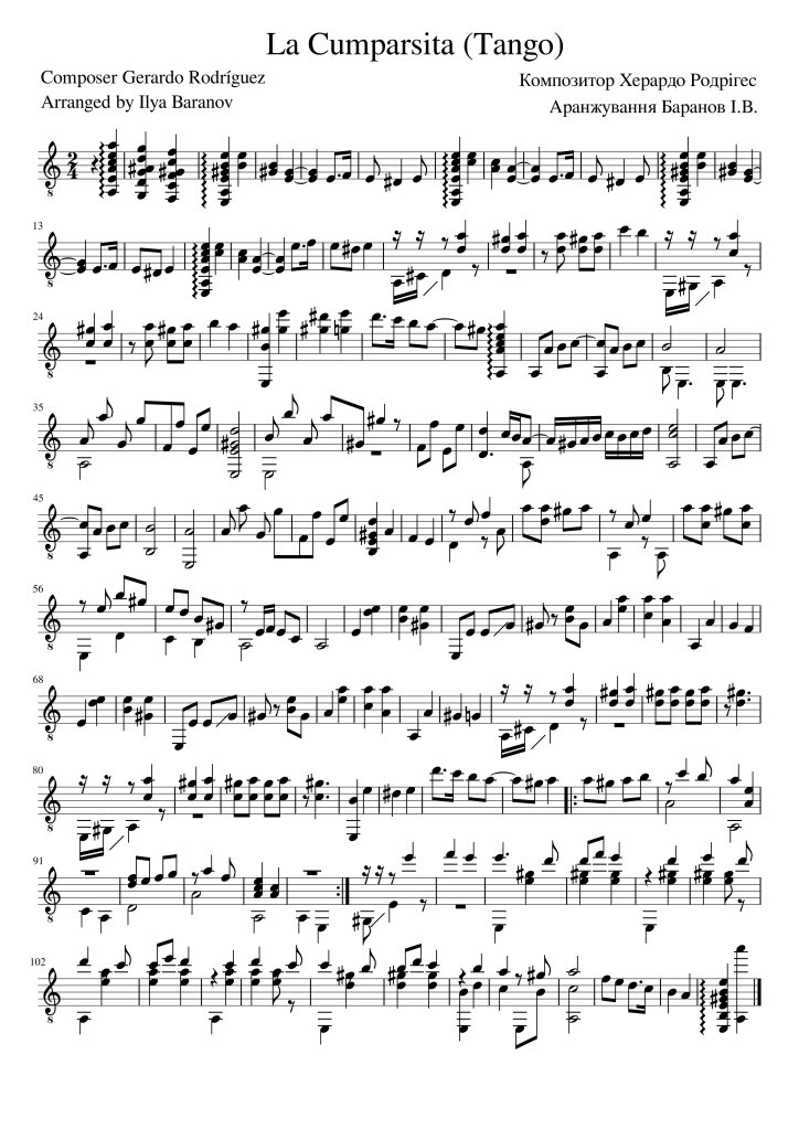 Сочиненная в 1917 году подростком Херардо Матосом Родригесом, эта скромная по происхождению композиция скрывает огромную популярность и значение, которые "La Cumparsita" приобретет в течение десятилетий. Название отсылает к группам карнавальных весельчаков, танцующих на улицах, что отражает первоначальный замысел произведения как легкомысленного, жизнерадостного номера в стиле бон-темп.