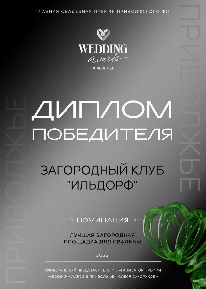 Друзья, нас переполняет радость и гордость! ИЛЬДОРФ вновь стал обладателем статуса ЛУЧШАЯ ЗАГОРОДНАЯ ПЛОЩАДКА ДЛЯ СВАДЬБЫ в Приволжье!