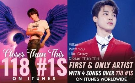 Чимин переписывает историю чартов iTunes. Песня Чимина Closer Than This заняла первое место в чарте iTunes Top Songs в Лаосе 25 марта, а затем заняла первое место в чарте iTunes Top Songs в Брунее два дня спустя, 27-го числа, заняв первое место среди 118 записанных стран. Таким образом, Чимин установил рекорд как первый и единственный артист в мире, чьи четыре песни впервые в истории iTunes заняли первое место в чарте iTunes Top Songs в более чем 118 странах и регионах. Ранее Чимин стал первым корейским сольным певцом, когда-либо достигшим первого места в главном чарте синглов Billboard «Hot 100», а «Like Crazy» и саундтрек к драме tvN «With You» заняли первое место в 119 странах. -kill, сольная песня Чимина «Filter» из 4-го полноформатного альбома BTS заняла первое место в 118 странах, а «Closer Than This» заняла первое место в 118 странах, побив его собственный рекорд. Это был прорыв. Кроме того, «Set Me Free Pt.2» был выпущен в 113 странах, совместная песня с Тэяном «Vibe» была в