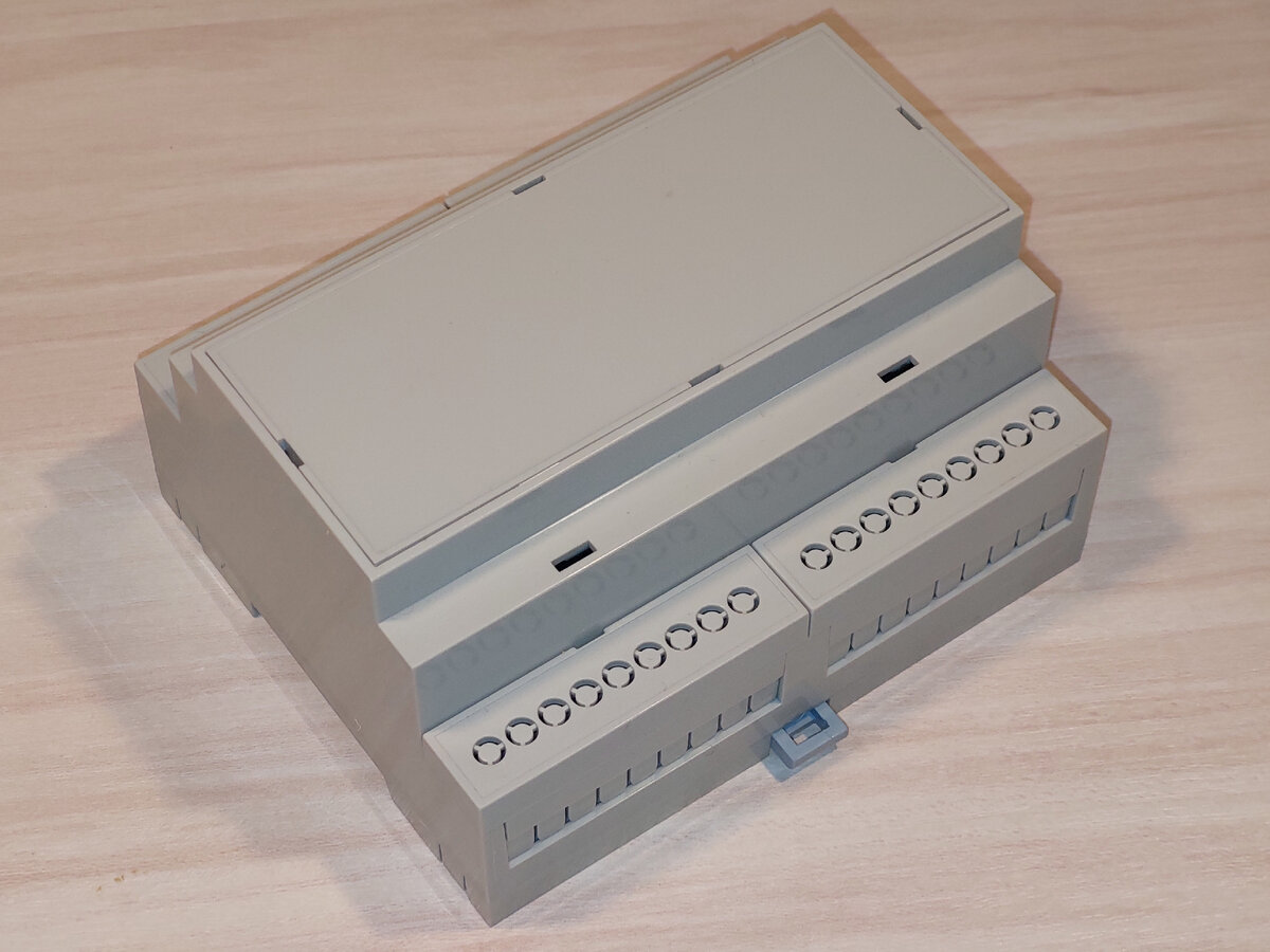 Конструктивно контроллер будет выполнен в форм-факторе din-реечного модуля для электрощитка. Корпус для изготовления такого устройства у меня давно валялся незадействованным. Эти корпуса продаются разных форм и размеров за вполне вменяемые деньги. Конкретно мой вот этот: