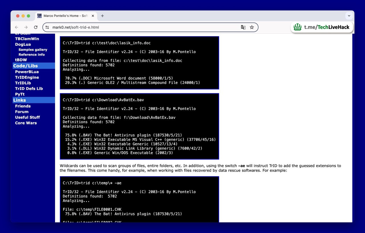 TrID (https://mark0.net/soft-trid-e.html) – утилита, представляющая собой инструмент командной строки. Предназначена для определения типа файла. Для этого выполните следующие шаги: