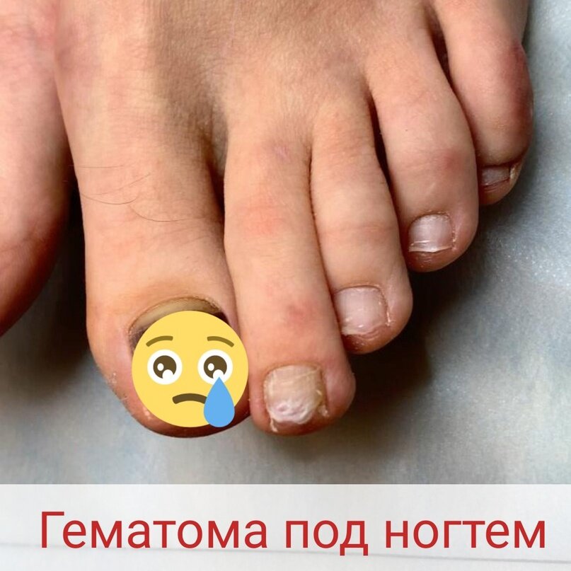 Гематома (кровоизлияние) под ногтем, является довольно распространенной проблемой, которая может принести немало беспокойства и дискомфорта. Это состояние возникает из-за травмы или сильного удара, которые приводят к разрыхлению или повреждению сосудов под ногтем. Причины появления гематомы под ногтем Наиболее распространенной причиной появления гематомы под ногтем является травма, например, удар молотком или падение на ногти. Также гематомы могут возникнуть от ношения неудобной обуви, что приводит к чрезмерному давлению на ноготь и периодическим микротравмам. Возможно наслоение факторов - в неудобной обуви получить длительное сильное давление, как это было в случае с нашим посетителем. Как результат - гематомы под ногтями больших пальцев (см. фото) . Методы лечения гематом под ногтями - Первая помощь в случае гематомы под ногтем включает нанесение холодных компрессов и поднятие ноги для снижения отечности и боли. - В некоторых случаях может потребоваться прокол гематомы, чтобы дать к