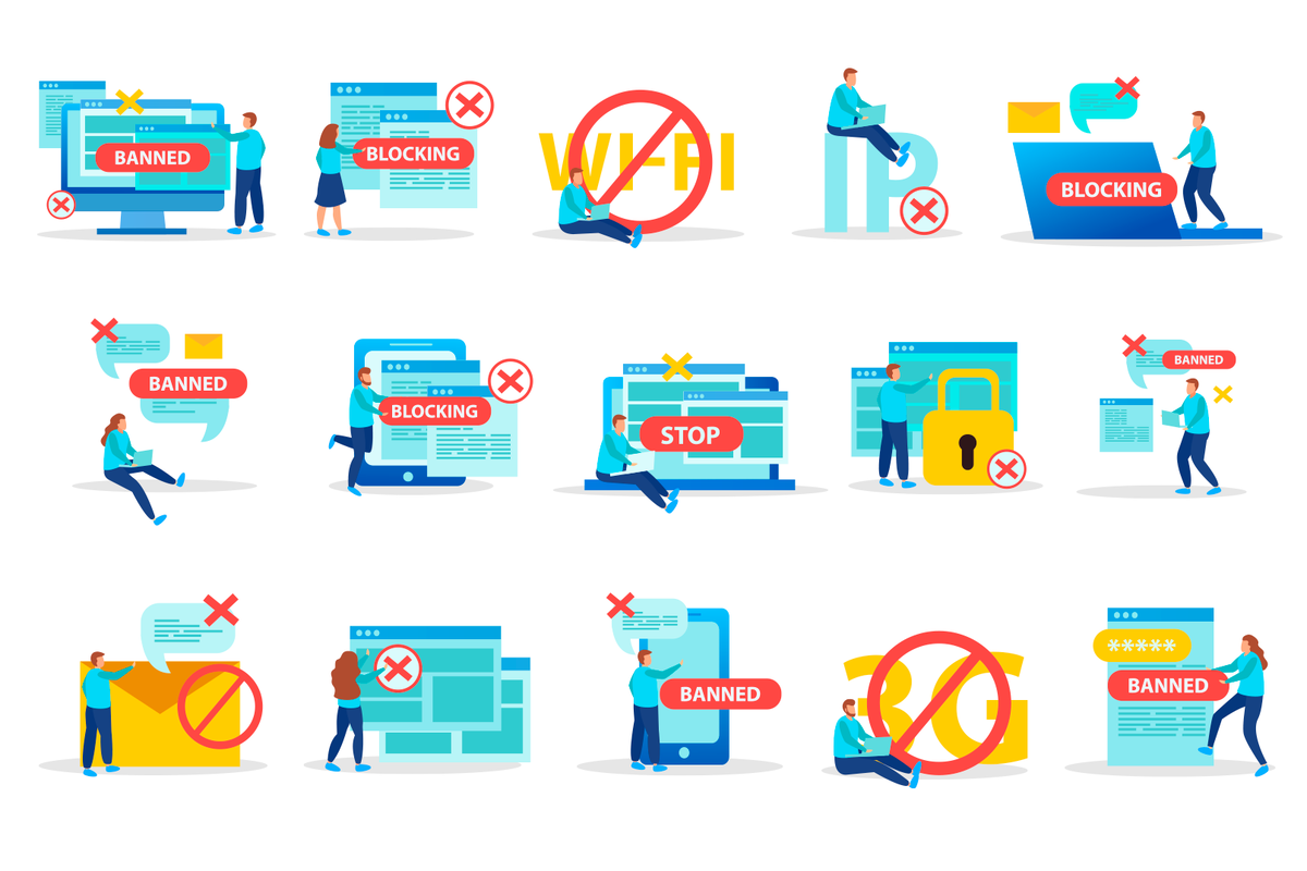 Что действительно могут «забанить в интернете», так это как раз сайты или площадки: они могут быть удалены из поисковой выдачи или заблокированы для просмотра, в зависимости от нарушений. Такие блокировки связаны с интернет-цензурой, а их частота сильно варьируется от страны к стране.