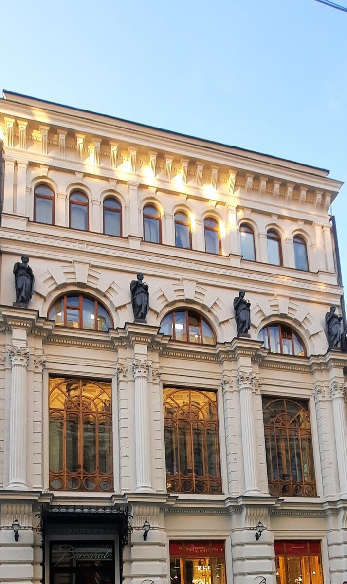 В конце Никольской улицы находится красивейшее здание дом № 21, бывшая аптека Феррейна. Она открылась в 1899 году и стала самой крупной в Европе и впоследствии имела безукоризненную репутацию. Журналисты окрестили ее Царь-аптека. Здание это очень необычное, оно имеет два лица. Главный фасад выполнен в стиле роскошного неоренессанса, а со стороны Театрального проезда здание выглядит, как готическая башня. Раньше на этой башне были установлены часы, для удобства горожан, которые безвозвратно исчезли. Спроектировал это великолепие архитектор Адольф Эрихсон. Фасад здания украшают четыре одинаковые статуи, изображающие богиню Гигию, покровительницу медицины, кормящую из чаши змею. Именно эта богиня дала название дисциплине гигиене. И соответственно здание поражало роскошью не только снаружи, но и внутри. Своим великолепием восхищали мраморные лестницы, просторные залы, полы из метлахской плитки, зеркала в золоченых рамах, дубовые резные шкафы, статуи, позолоченные вазы. Т