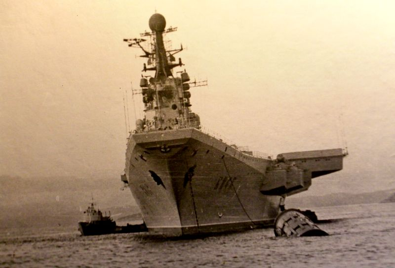 Советский военно-морской флаг вьётся на лёгком ветру и потому на душе хорошо. Командир с секретарём парткома в районе флагштока. В это время рядом с левой кормовой автоматной площадкой очень низко - хоть покрасочным штоком бей, зависает натовский вертолётик. Дверь вертолёта открыта. Импозантный "мэн" в лётном комбинезоне и шлеме, свесив наружу ноги, нагло целит мощным фотоаппаратом в киевлян с хищным империалистическим прищуром.
