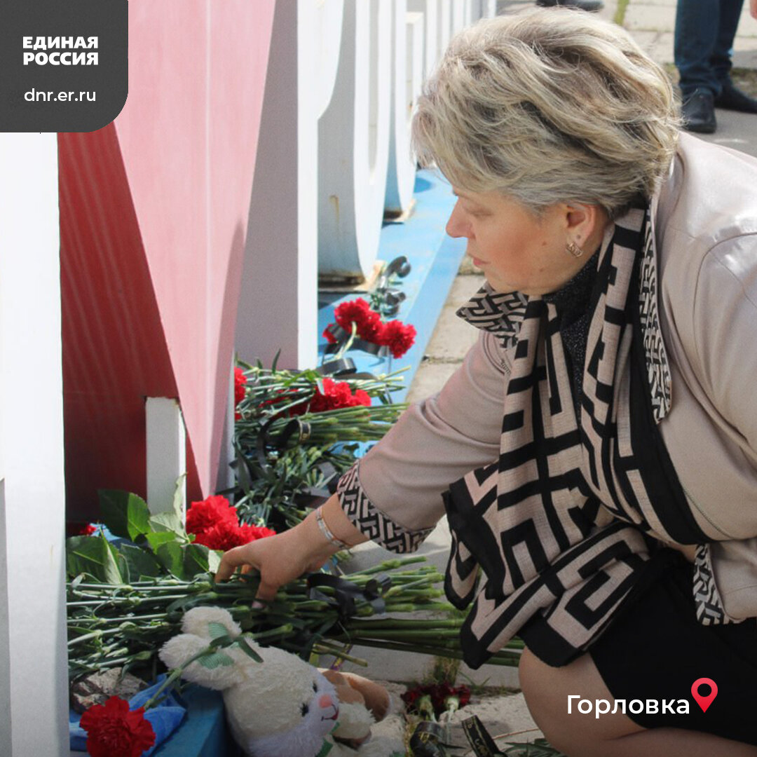 🕯️ Единороссы из всех городов Донецкой Народной Республики в девятый день со дня теракта в Красногорске возлагают цветы к стихийным мемориалам.