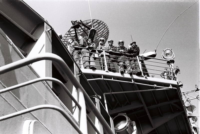 Нет – не растаскивают! Вахтенный на месте. "Всё хорошо!" - думает довольный помощник командира. Только, почему-то, матросы стоящего неподалёку французского корабля комплексного снабжения ведут себя странно. Несколько человек в шортах толпятся у леера, показывают руками в сторону борта советского крейсера и поочерёдно поднимают над головой в восхищении большой палец, пытаясь привлечь внимание офицера.