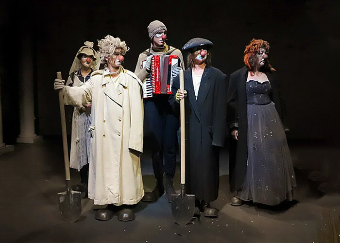 В театре бытует мнение, что спектакль начинает жить полноценной жизнью примерно на 10-12-м представлении. Премьеру «Клоунов» в театре ОКОЛО Дома Станиславского сыграли в минувшем октябре, так что время смотреть спектакль уже пришло и можно безбоязненно его рекомендовать, имея в виду то ещё, что «Клоуны» — из тех спектаклей, где для успеха многое должно сойтись… Помните, у Чехова: в человеке всё должно быть прекрасно — и одежда, и душа… Так и тут: настроение и тонус артистов, их физическая форма, публика — её состав, её настрой. Дело, разумеется, и в неизменной камерности сцены и зала театра ОКОЛО, но также и в истории, вроде бы понятной и простой, хотя как раз про такое и говорят, что всё простое не так просто. Спектакль Саши Толстошевой, ученицы основателя и худрука театра ОКОЛО Юрия Николаевича Погребничко, был вдохновлён — о чем написано на сайте театра — одной из сюжетных линий одноимённого фильма Федерико Феллини. Это не игра в цирк и даже не собранные вместе или разрозненные мысл