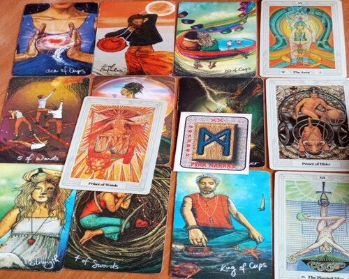Карты на позицию – Туз кубков, Двойка пентаклей, Десятка мечей