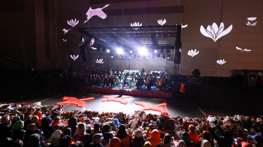 Акция прошла на девятый день после трагедии. Фото: Прокофьев Вячеслав / ТАСС; 5-tv.ru У стен «Крокус Сити Холла» вечером зажгли фигуры журавлей, составленные из свечей. Данная акция прошла на девятый день после трагедии. Соответствующие кадры оказались в распоряжении 5-tv.ru. В течение всего дня огромное количество людей приносили к стихийному мемориалу цветы. Почтили память погибших не только простые граждане, но и дипломаты иностранных государств. На девятый день после трагедии также были запущены в небо белые воздушные шары. Кроме того, возле стихийного мемориала состоялся концерт симфонического оркестра под управлением художественного руководителя Большого и Мариинского театров Валерия Гергиева. Световая проекция с летящими белыми журавлями также в это время появилась на здании «Крокуса». Собравшиеся на мероприятии люди не могли сдержать слез. Теракт в «Крокусе» произошел вечером 22 марта незадолго до концерта группы «Пикник». Боевики не только стреляли по невинным людям, но еще и