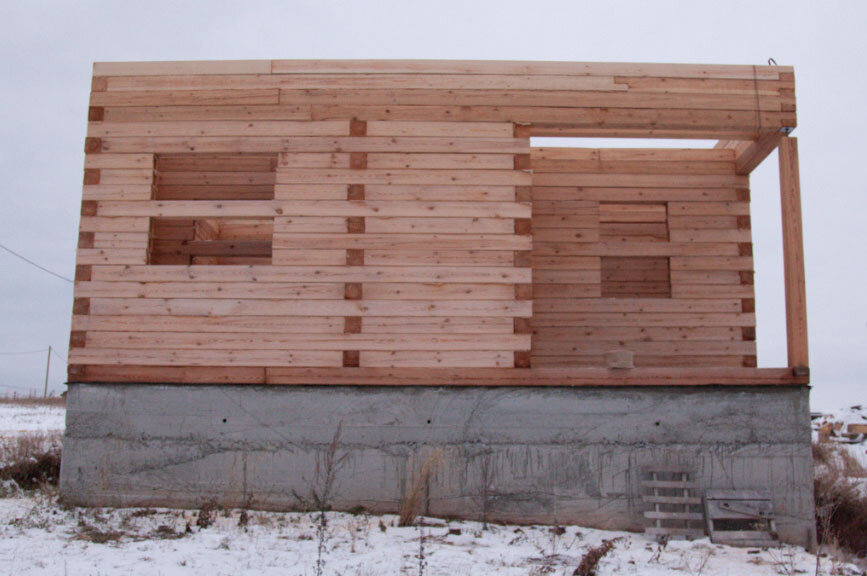 На дворе уже 27 октября, и я наконец закончил складывать брус. Снег и мороз заставили меня ускориться. Два последних венца я уложил примерно за четыре дня. Замерз жутко, приходилось выбегать на час работы, а потом бегом во времянку греться. К тому моменту, я перестал ночевать на участке и жил на квартире с семьей. Приходилось ездить каждый день 12 км, и возить с собой весь инструмент с генератором.