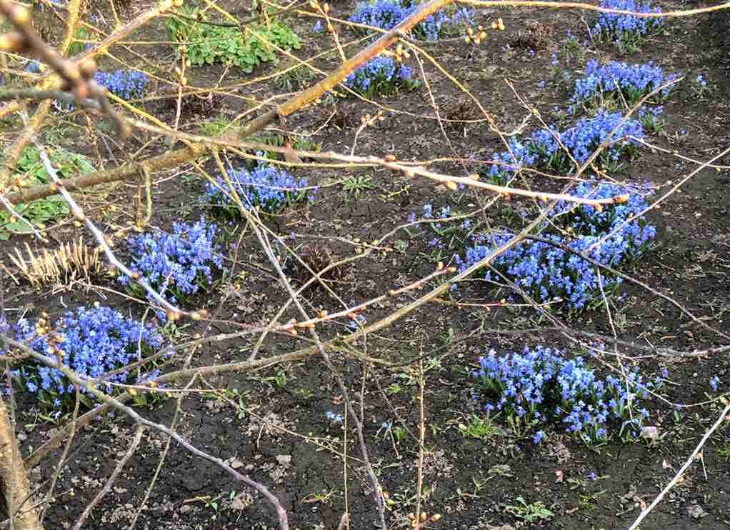 Наконец показали полную красоту пролески или сциллы. Я их специально ращу на отдельном пяточке под деревьями, чтобы потом рассадить на постоянном месте. Часть цветов мы купили у частника, а большую часть нам отдали по дружбе. Через пять лет они хорошо разрослись. Раньше я сталалась заиметь в сад растения разные, по одному экземпляру. И только в последнее время поняла, что лучше иметь меньше названий, но в большем количестве. Посадка массивом всегда смотрится выиграшно. Первоцветами у меня выступали тюльпаны. На мелколуковичные я не обращала внимание. Даже названий их не знала. Я не помню, чтобы раньше у кого-либо в цветнике заводилась эта мелочь. У нас в лесу росли синие печеночницы, которые все называли и называют пролесками. Впрочем, мы этот лазоревый цветок и подснежником обзывали. Еще мы собирали белые ветреницы и фиолетовую сон-траву. Сциллу в дикой природе никогда не встречала.