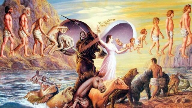 Если смерть это полное уничтожение, то она не возможна. В мире ничто не появляется из ниоткуда. Пустоты как таковой и не существует. Все в мире состоит из энергии (материи/антиматерии). Приведу пример рассуждений Николы Теслы: "Все во вселенной есть переход из одного состояния в другое. Вот и весь секрет. Вы никогда не умрете, потому как никогда не рождались. В том или ином состоянии энергии вы были всегда". В каком-то плане мы отчасти и древние динозавры, и метеорит, что их погубил, и изначальный материал, из которого сформировалась наша планета, и травинка, и жучок с той травинки. А если капнуть ещё глубже - есть теория циклической модели вселенной. Она потенциально отвечает на вопрос "что же было до большого взрыва?". Наша вселенная бесконечно расширяется. И тут можно провести аналогию с циклом жизни звёзд. Они появляются от слияния водорода и гелия, а умирают, когда гелий в ядре смешивается с железом и углеродом, и ядро взрывается, превращаясь или в нейтронную звезду, или в черну